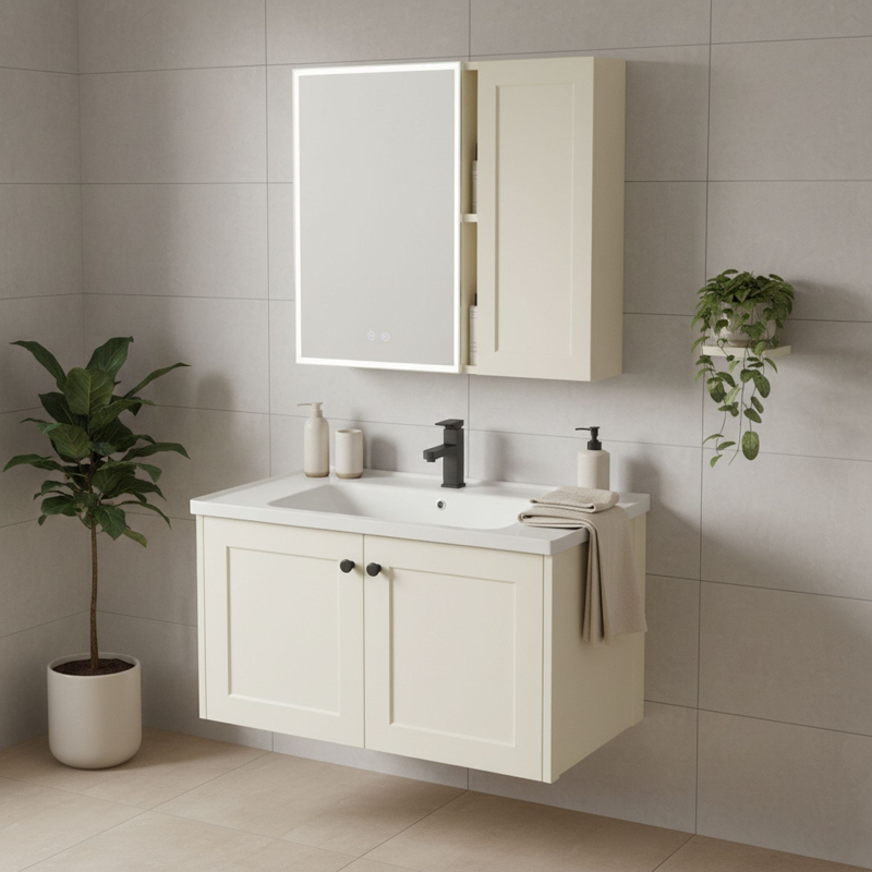 Oceňte eleganciu a moderný štýl vo svojej kúpeľni vďaka kúpeľňovému nábytku Rea Monti 60 v jedinečnej farbe Creme. Funkčná kombinácia skrinky pod umývadlo, umývadlá a zrkadlové skrinky premení vzhľad interiéru. Zostava je navrhnutá tak, aby maximálne využila dostupný priestor pri zachovaní ľahkého a estetického vzhľadu. Naše kúpeľňové skrinky ponúkajú množstvo výhod: Závesná skrinka pod umývadlo, ktorá opticky zväčšuje kúpeľňu a uľahčuje upratovanie. Dekoratívne frézované čelné plochy dodávajúce nábytku krémovému odtieňu. LED zrkadlo s funkciou anti-fog zaisťujúce dokonalú viditeľnosť bez zahmlenia. Keramické umývadlo v balení, ľahko udržiavateľné. Doplnková skrinka nad umývadlo pre prehľadné uloženie kozmetiky. Kúpeľňový set Rea Monti 60 je ideálnou voľbou pre modernú a komfortnú kúpeľňu.