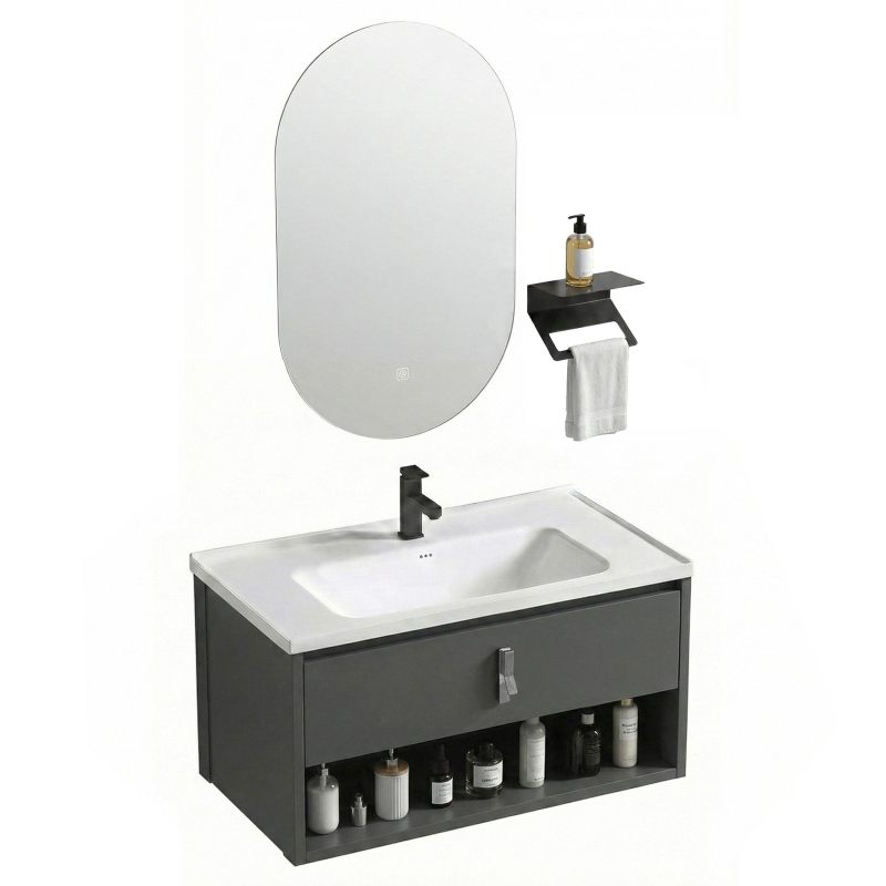 Kúpeľňová zostava Toledo je moderný komplet vybavenia, ktorý spája funkčnosť umývadlovej zóny s doplnkovými organizačnými prvkami. Balíček sa skladá zo štyroch zladených častí: skrinky pod umývadlo, zodpovedajúcej keramiky, podsvieteného zrkadla a nástenného vešiaka. Celok tvorí ucelené riešenie pripravené na montáž. Skrinka pod umývadlo – závesný modul ponúkajúci rôznorodý úložný priestor. Konštrukcia z plastu zahŕňa skrinku a otvorenú spodnú policu, ideálna na uteráky alebo kozmetiku.Keramické umývadlo – model prispôsobený rozmerom skrinky. Má široký okraj a pripravený otvor pre montáž stojančekovej batérie. LED zrkadlo 70×40cm – oválna plocha so zabudovaným osvetlením, ovládaným nenápadným dotykovým spínačom umiestneným na skle. Vešiak s poličkou – doplnkový kovový nástenný prvok, ktorý spája držiak na uterák s praktickou poličkou na drobnosti. uľahčuje udržiavanie čistoty v kúpeľni. Komplet Toledo je rozšírené riešenie pre tých, ktorí ocenia pohodlie. Kombinácia plastovej skrinky, moderného LED zrkadla a funkčného vešiaka zaisťuje komfortné používanie umývadlovej zóny.