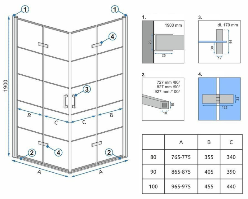 Kabína prysznicowa Molier składa się z dvoch drzwi szklanych, wykończonych eleganckimi elementami w kolorze czarny mat. Model ten je ideálnym rozwiązaniem, w niedużych i nieustawnych pomieszczeniach łazienkowych. Drzwi možno złożyć na ściane. Dajú to nieograniczone możliwości w praktycznym użytkowaniu łazienki. Szkło w kabínie jest nie tylko bezpieczne, ale tiež praktyczne, dzięki zastosowaniu powłoki Easy Clean. Dzięki tej nowoczesnej technológii na szkle nie osadza sie kamień, a czyszczenie nie wymaga użycia silných środków. Inštrukcia