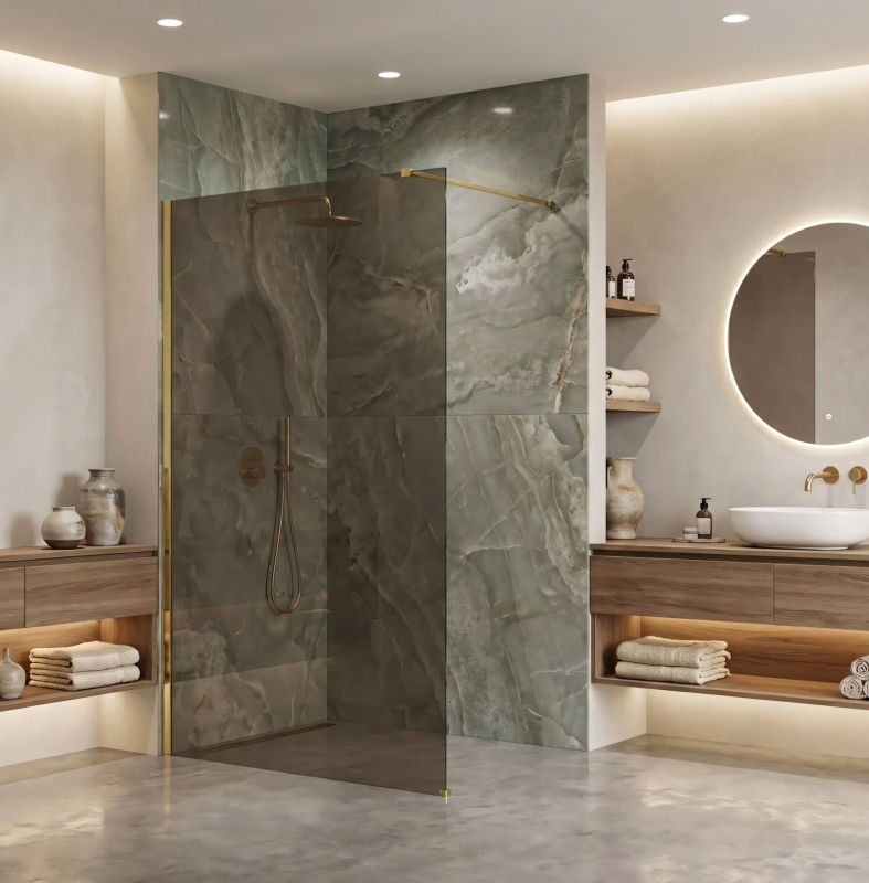 Vneste do svojej kúpeľne atmosféru teplého luxusu vďaka walk-in sprchovej stene Rea Flexi v jedinečnej konfigurácii: sklo v odtieni Dymovo Hnedá a profil vo farbe Lesklé Zlato. Toto harmonické spojenie stmavenej hnedej tabule a lesklých detailov vytvára mimoriadne elegantný a útulný priestor. Konštrukcia z pevného 8mm tvrdeného skla zaisťuje stabilitu a bezpečné používanie. 8 mm tvrdené sklo (Dymovo Hnedá) – odolná tabuľa s teplým hnedým tónom, ktorá dodá interiéru útulnosť, zaistí diskrétnosť a skvele ladí so zlatými doplnkami. Hliníkový profil Lesklé Zlato – efektný svetlo a je výraznou ozdobou kúpeľne. Povrch Easy Clean – neviditeľná hydrofóbna bariéra, ktorá uľahčuje stekanie vody a chráni pred usadeninami mydla a vodného kameňa. Stabilizačné rameno 120 cm, skracovateľné – možnosť úpravy na mieru pre dokonalé prispôsobenie priestoru. dlažbu s odtokom. Konštrukcia Walk-In - moderný otvorený vstup bez dverí, ktorý zaisťuje voľnosť pohybu a podčiarkuje vzdušnosť kúpeľne. Sprchová stena Rea Flexi je voľbou pre tých, ktorí oceňujú nadčasovú klasiku v modernom prevedení. Duo lesklého zlata a hnedej vytvára vycibrenú kompozíciu, ktorá interiér príjemne zateplí. Vďaka kvalitným materiálom a úprave Easy Clean je produkt nielen krásny, ale aj praktický.