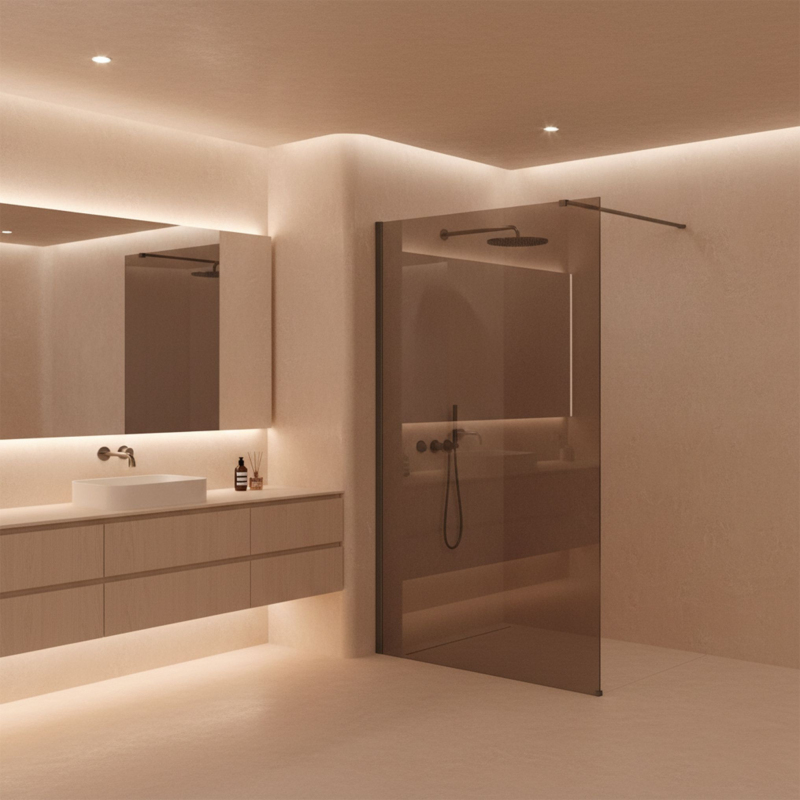 Hľadáte riešenie, ktoré dodá vašej kúpeľni jedinečný, dizajnérsky charakter? Zvoľte sprchovú stenu walk-in Rea Flexi v originálnom prevedení: sklo v odtieni Dymovo Hnedá a profily vo farbe kartáčovaný titán. Táto kombinácia spája teplo tónovaného skla so strohou eleganciou kovového, matného povrchu. Konštrukcia z pevného 8mm kaleného skla zaručuje stabilitu a bezpečnosť. Kalené sklo 8 mm (Dymovo Hnedá) – odolná tabuľa s elegantným hnedým zafarbením, ktorá vytvára útulnú atmosféru a poskytuje pocit súkromia. Hliníkový profil kartáčovaný titán – výnimočný matný povrch v titánovom odtieni chrómu.Povrchová úprava Easy Clean - technológia uľahčujúca údržbu tým, že odpudzuje vodu a obmedzuje usadzovanie vodného kameňa.Vzpera 120 cm s možnosťou skrátenia - stabilizačné rameno v titánovej farbe, ktoré možno ľahko skrátiť podľa šírky sprchovacej miestnosti. priamo na podlahu. Konštrukcia Walk-In – priestranný vstup bez bariér, mimoriadne pohodlný a podčiarkujúci minimalistický štýl kúpeľne. Sprchová stena Rea Flexi je skvelou voľbou pre milovníkov nevšedných riešení. Hnedý odtieň skla v kombinácii s kartáčovaným titánom vytvára kompaktný a veľmi pôsobivý celok. Pevné spracovanie a ochranná vrstva z nej robia investíciu do pohodlia a vycibreného štýlu na dlhé roky.