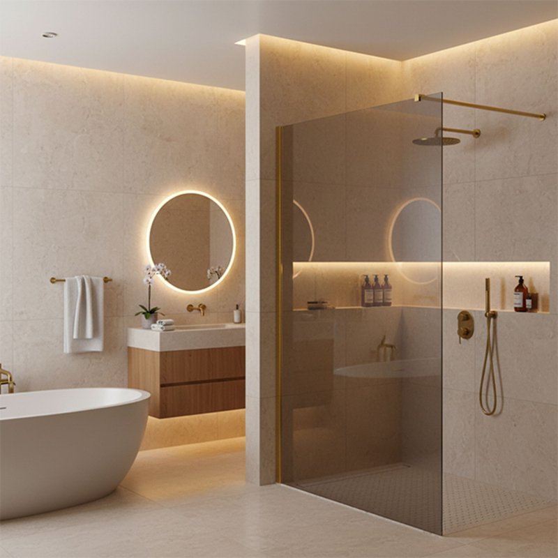 Podčiarknite jedinečný charakter svojej kúpeľne voľbou walk-in sprchovej zásteny Rea Flexi so šedým sklom a profilmi vo farbe zlatá lesk. Toto vycibrené spojenie tónovanej grafitovej tabule s lesklou úpravou dodá interiéru modernú eleganciu. Konštrukcia z pevného 8mm tvrdeného skla zaručuje bezpečnosť a dlhú životnosť. 8mm tvrdené sklo (sivé) – odolná tabuľa s hlbokým šedým tónom, ktorá vytvára intímnejšiu atmosféru, zaisťuje súkromie a je moderným pozadím pre lesklé detaily. Hliníkový profil zlatá lesk – efektný zrkadlo a kontrastuje s tmavším sklom. Obliečka Easy Clean – moderná hydrofóbna vrstva, vďaka ktorej voda rýchlejšie steká a obmedzuje usadzovanie mydla a vodného kameňa. Stabilizačná vzpera 120 cm s reguláciou – rameno v zlatom lesku, skracovateľné na mieru pre presné nastavenie. alebo vľavo, na vaničku alebo priamo na dlažbu so žľabom. Konštrukcia Walk-In - minimalistický otvorený vstup bez dverí a prahov, pre maximálne pohodlie a ľahký prístup. Sprchová zástena Rea Flexi Gold Gloss Grey je voľbou pre tých, ktorí hľadajú nevšedný dizajn. Kombinácia šedého skla a lesklého zlata vytvára luxusný a výrazný efekt. Vďaka povlaku Easy Clean a kvalitným materiálom spája dekoratívny vzhľad s praktickosťou.