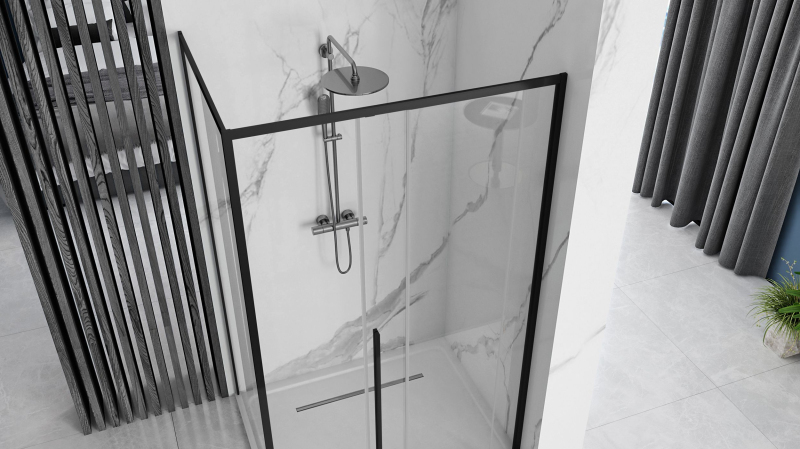 Solar Black Mat Moderný sprchovací kút je výrazný, nadčasový a moderný sprchovací kút vyrobený z najkvalitnejších materiálov a povrchovo upravený čiernym laminátom. Čierny matný lak je odolný voči nečistotám a škvrnám a taktiež sa ľahko čistí. Kombinácia čiernych profilov, dlhého madla a pántov s priehľadnou líniou sklenených plôch skvele zapadne do modernej aj tradičnej kúpeľne. Čierna farba je jednoznačným lídrom na trhu kúpeľňového interiéru. Montážny návod