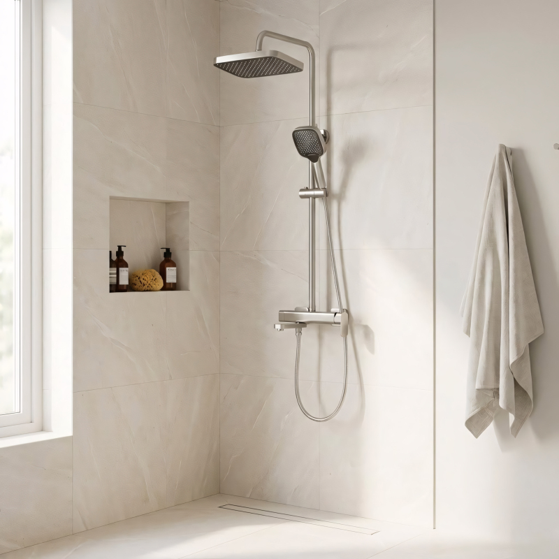 Scegli il minimalismo moderno e una durata eccezionale con il set doccia esterno Rea Arlo. In finitura Nichel Spazzolato, questo modello è un'ottima alternatíva al classico cromo, portando in bagno un'eleganza discreta a un tocco contemporaneo. Il corpo del miscelatore in ottone e la technology productiva avanzata garantiscono affidabilità nel tempo.Colore Nichel Spazzolato – una finitúra opaca e nobile, non solo d'effetto ma anche piu facile da pulire rispetto al cromo lucidoRi. colore che assicura un'elevata resistenza a graffi e opacizzazione.Corpo in ottone – il cuore del set, realizované v una lega durevole, resistente alla corrosione a alle alte pressioni dell'acqua.Soffione e doccetta in ABS – componenti in robust geometrico – le forme quadrate di soffione e doccetta si inseriscono perfettamente in bagne moderni e industrial. Grazie al rivestimento PVD a aj componenti in ottone, è un investimento in qualità.