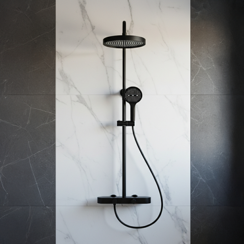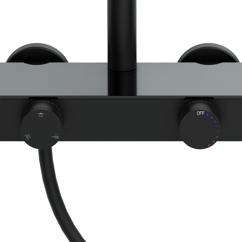 Sprchová súprava REA Creo Black je moderné nástenné riešenie, ktoré kombinuje elegantnú matnú čiernu s pohodlím každodenného používania. Model bol navrhnutý s dôrazom na funkčnosť a estetiku, vďaka čomu skvele zapadá do moderných, loftových aj industriálnych interiérov. Plynulé ovládanie pomocou otočných gombíkov - batéria je vybavená dvoma ergonomickými gombíkmi. Prvý umožňuje presné a pohodlné nastavenie teploty vody, druhý slúži na prepínanie režimov prúdu medzi hlavovou sprchou, ručnou sprchou a výtokom. Ručná sprcha s funkciou Bidetta – praktická ručná sprcha má tlačidlo na zadnej strane tela a ďalší vývod hore. Po aktivácii môže slúžiť ako bidetová spŕška, čo uľahčuje rýchle opláchnutie kabíny, umytie vaničky alebo naplnenie vysokého vedra. Diskrétny kaskádový výtok – integrovaný vaňový výtok poskytuje široký kaskádový prúd, ktorý sa hodí pri umývaní rúk alebo plnení nádoby bez použitia ručnej sprchy. galvanizácia. Povrch je hladký, odolný a rezistentný voči vlhkosti i každodennému používaniu. Pevná konštrukcia – telo batérie je vyrobené z odolnej mosadze, čo zaisťuje stabilitu a dlhú životnosť. Hlavová aj ručná sprcha z ABS sú ľahké, praktické a ľahko sa udržujú. Komfortné prispôsobenie – výškovo nastaviteľná tyč umožňuje prispôsobiť polohu hlavovej sprchy výške užívateľov aj usporiadaniu sprchovej zóny. REA Creo Black je premyslená sprchová súprava pre tých, ktorí očakávajú moderný vzhľad a pohodlné ovládanie. Funkčné riešenie a odolné materiály robia každodenné sprchovanie komfortnejšie a intuitívnejšie.