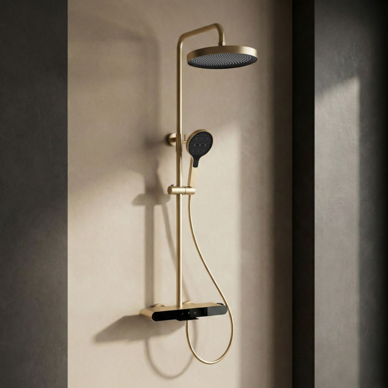Dodajte svojej kúpeľni výnimočný, elegantný charakter vďaka nástennému sprchovému setu Rea Farel Brush Gold. Tento model v prevedení kartáčované zlato je určený pre tých, ktorí hľadajú alternatívu k čiernej a chrómu. Set kombinuje ušľachtilý kovový dizajn s inovatívnou funkčnosťou ovládania a udržiavania čistoty. Farba Brush Gold - ušľachtilý zlatý odtieň s jemne kartáčovanou štruktúrou. Saténová povrchová úprava pôsobí moderne a zároveň je praktická - na kartáčovanom povrchu sú kvapky vody a odtlačky prstov výrazne menej viditeľné. PVD povlak - zlatá farba bola nanesená technológiou PVD (Physical Vapor Deposition). Ide o najodolnejšiu metódu farbenia armatúry, ktorá zaručuje mimoriadnu odolnosť voči poškriabaniu, zmatneniu a korózii. Intuitívny panel Piano – batéria sa ovláda pomocou troch mechanických tlačidiel (kláves). Toto pohodlné riešenie umožňuje bleskovo prepínať prúd vody medzi hlavovou sprchou, ručnou sprchou a výtokom bez nutnosti otáčania ovládačov. Ručná sprcha s funkciou Bidetta – rukoväť sprchy skrýva ďalšiu funkciu. Má tlačidlo na zadnej strane a trysku na hornej časti tela. Po aktivácii sa zmení na bidetovú spršku, čo uľahčuje čistenie kabíny, umývanie vaničky či napúšťanie vysokých nádob. Diskrétny kaskádový výtok – telo batérie je vybavené širokým kaskádovým výtokom. Umožňuje rýchle naplnenie vedra, misky alebo kontrolu teploty vody priamo pri batérii. Materiály a regulácia – srdcom setu je pevné telo z mosadze. Hlavová aj ručná sprcha z ľahkého ABS majú systém proti usadzovaniu vodného kameňa. Celok je upevnený na výškovo nastaviteľnej tyči. Set Rea Farel Brush Gold predstavuje spojenie technologickej presnosti a jedinečného dizajnu. Kartáčovaný zlatý PVD povrch je výrazným akcentom interiéru a funkcie sprchy aj výtoku z neho robia jeden z najfunkčnejších setov na trhu.