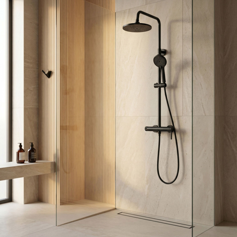 Hľadáte funkčné a štýlové riešenie do svojej kúpeľne? Vyberte si sprchový set na stenu Rea Rivo v modernom prevedení Čierna matná. Je to ideálna voľba pre tých, ktorí oceňujú minimalistický design a premyslené funkcie. Pevné mosadzné telo batérie a nastaviteľná výška hlavovej sprchy zaisťujú pohodlné používanie. Design Black Mat – hlboká matná čierna dokonale kontrastuje so svetlou keramikou a skvele zapadá do trendov loftových, moderných aj škandinávskych kúpeľní. Povrchová úprava Electroplating – galvanicky nanesená úprava zaisťuje dokonale každodennému používaniu. Telo batérie z mosadze – prvotriedny materiál zaručuje pevnosť konštrukcie, tesnosť a plnú odolnosť proti korózii. Multifunkčná ručná sprcha – ponúka štandardné režimy prúdu aj inovatívny prúd typu „bidetka“ umiestnený v hornej časti sprchy, čo výrazne uľahčuje udržiavanie čistoty v sprchovej zóne. sily prúdu vody po mnoho rokov. Systém Anti-Calc – silikónové trysky v ručnej aj hlavovej sprche zabraňujú usadzovaniu vodného kameňa, čo umožňuje rýchle čistenie a zachovanie plnej priechodnosti setu. Montáž na stenu – štandardný rozstup pripojenia 150 mm umožňuje jednoduchú, rýchlu a bezproblémovú inštaláciu. skvelou voľbou pre tých, ktorí oceňujú výrazný design a nadpriemernú funkčnosť. Vďaka technológii electroplating si čierny povrch zachováva bezchybný vzhľad a ponúka spoľahlivosť aj štýlový vzhľad vo vašej kúpeľni.