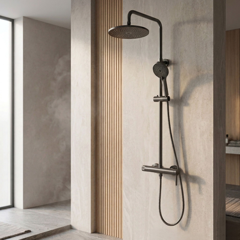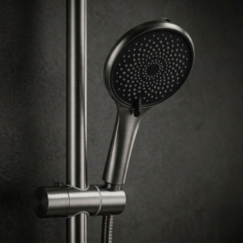 Hľadáte funkčné a štýlové riešenie do svojej kúpeľne? Objavte sprchový set na stenu Rea Rivo v modernom prevedení Titan. Je to ideálna voľba pre tých, ktorí oceňujú minimalistický design a premyslené funkcie. Pevné mosadzné telo batérie a nastaviteľná výška hlavovej sprchy zaisťujú pohodlné používanie. Farba Titan – jedinečné oceľovo šedé kartáčované prevedenie (získané pomocou pokročilej technológie PVD), ktoré sa skvele hodí do moderných, loftových a industriálnych interiérov a dodáva priestoru výrazný kovový charakter. používanie. Multifunkčná ručná sprcha – ponúka nielen štandardné režimy, ale aj inovatívny prúd typu „bidetka“ umiestnený v hornej časti sprchy, čo výrazne zvyšuje funkčnosť kúpeľne. Keramická kartuša – presný mechanizmus umožňujúci plynulú a pohodlnú reguláciu teploty a sily prúdu vody. pomáhajú udržiavať set v čistote. Montáž na stenu – štandardný rozstup pripojenia 150 mm umožňuje jednoduchú a rýchlu inštaláciu. Sprchový set Rea Rivo Titan je skvelou voľbou pre tých, ktorí oceňujú moderný dizajn a nadpriemernú funkčnosť. Tento set zvyšuje komfort každodennej sprchy a ponúka spoľahlivosť aj štýlový technický vzhľad vo vašej kúpeľni.