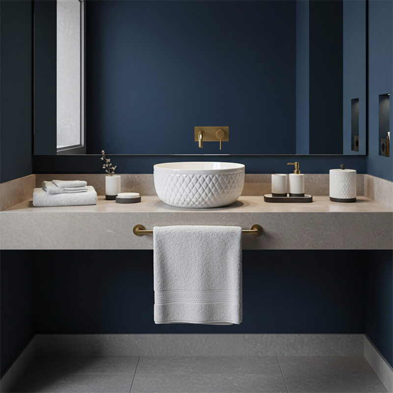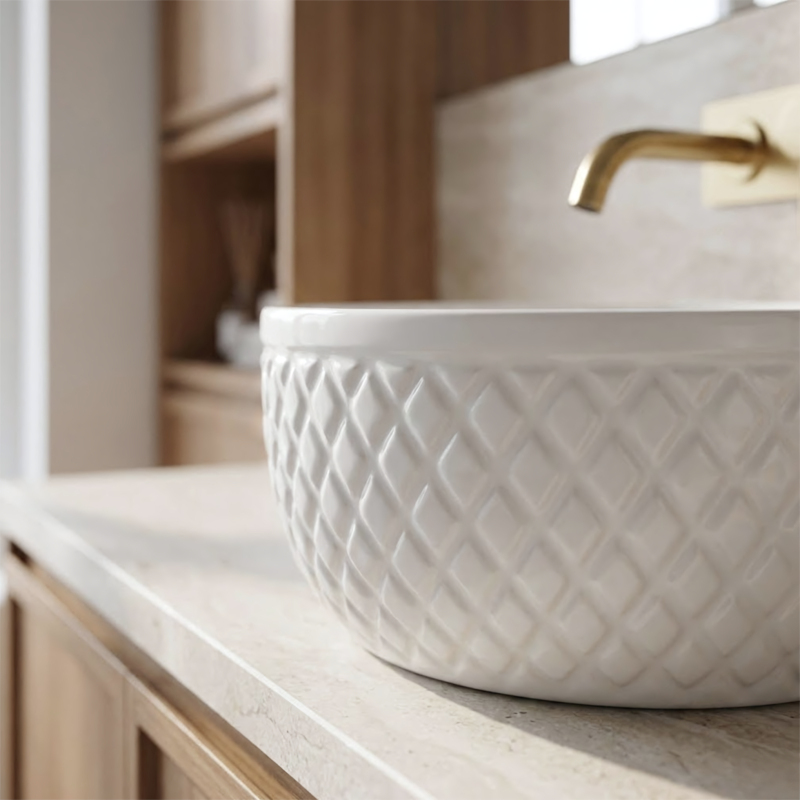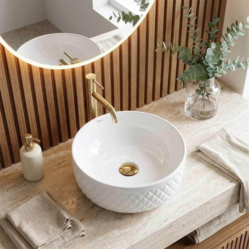 Podčiarknite elegantný charakter svojej kúpeľne s umývadlom na dosku Rea Galaxy. Tento model spája klasickú bielu s dekoratívnou formou, ktorá upúta pozornosť. Vonkajšie steny misy zdobí ryhovaná štruktúra v kosoštvorcoch, vďaka ktorej keramika pôsobí ako luxusný doplnok v glamour štýle. Dekoratívna textúra - vonkajší povrch umývadla má výrazné geometrické reliéfy pripomínajúce prešívanie, ktoré vytvárajú efektnú hru svetla a tieňa a oživujú interiér. Tento rozmer obmedzuje rozstrekovanie vody a je ideálny pre kombináciu s vysokými stojančekovými alebo podomietkovými batériami. Biela keramika – prevedenie z vysoko kvalitnej glazovanej sanitárnej keramiky zaisťuje dlhú životnosť, bezchybný lesk a odolnosť proti poškriabaniu. Hladké vnútorné prevedenie – na rozdiel od dekoratívneho plášťa je vnútro hygienu. Montáž na dosku - umývadlo je určené na postavenie na dosku alebo skrinku a stáva sa výrazným centrálnym prvkom umývacej zóny. Umývadlo Rea Galaxy je voľbou pre tých, ktorí chcú v kúpeľni prelomiť minimalizmus. Jeho šperkársky dizajn sa skvele kombinuje s elegantnými doplnkami a spája praktické prednosti hlbokej misy s jedinečným štýlom.
