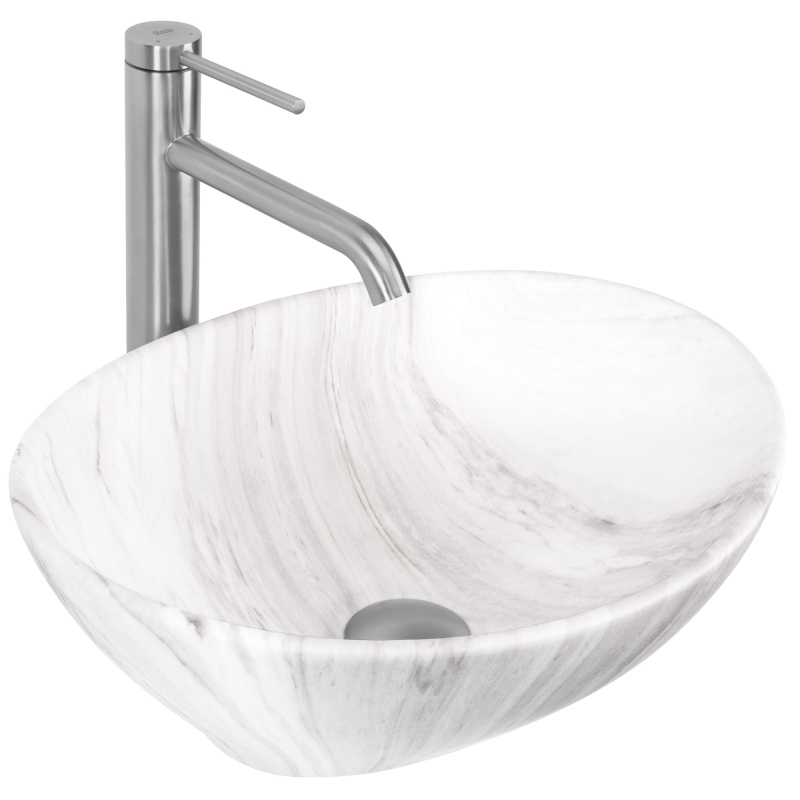 Predstavujeme Vám moderné nové umývadlo na dosku série Rea Sofia. Umývadlo oválneho tvaru je vyrobené z vysoko kvalitných materiálov. Vďaka svojim vlastnostiam splní požiadavky všetkých ľudí, ktorí požadujú dokonalé vlastnosti a parametre podľa svojich predstáv. Ide o perfektný model pre zákazníka, hľadajúceho predovšetkým funkčné, ale hlavne jednoduché riešenie. Umývadlo je určené na montáž na dosku, ale je možné ho kombinovať aj so skrinkou. Umývadlo je vyrobené v šedom prevedení s mramorovým efektom a vďaka špeciálnej fáze výroby sa ľahko čistí a je veľmi odolné. Vďaka zvolenej technike povrchovej úpravy je každé umývadlo originálne, má svoj jedinečný vzor. CAD