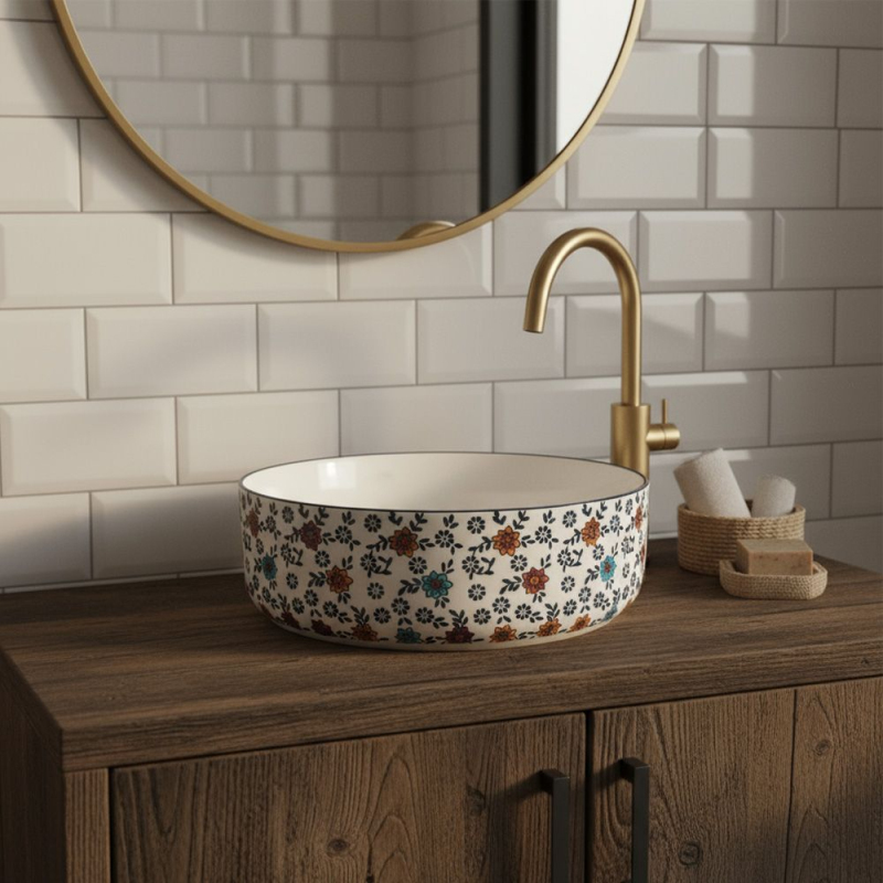 Hľadáte umývadlo, ktoré sa stane ozdobou vašej kúpeľne? Objavte umývadlo na dosku Rea Stefania, ktoré spája hladkú matnú povrchovú úpravu s originálnym viacfarebným kvetinovým vzorom. Vyrobené z kvalitnej sanitárnej keramiky, je ideálnou voľbou pre tých, ktorí oceňujú rustikálny dizajn a vysokú kvalitu. Matný povrch - dodáva umývadlu moderný a elegantný vzhľad, je príjemný na dotyk a ľahko sa čistí. Jedinečný kvetinový vzor - farebné zdobenie na vonkajšej strane robí z umývadla dekoratívny prvok. udržovateľná. Nablátová montáž - umožňuje vystaviť krásu vzorovaného tela umývadla. Okrúhly tvar - klasický a nadčasový design. Bez otvoru pre batériu - vhodné pre vysoké alebo nástenné batérie. Bez prepadu - hladký, minimalistický vnútorný povrch. Umývadlo Rea Stefania je ideálnou voľbou pre tých, ktorí chcú do kúpeľne v kúpeľni.
