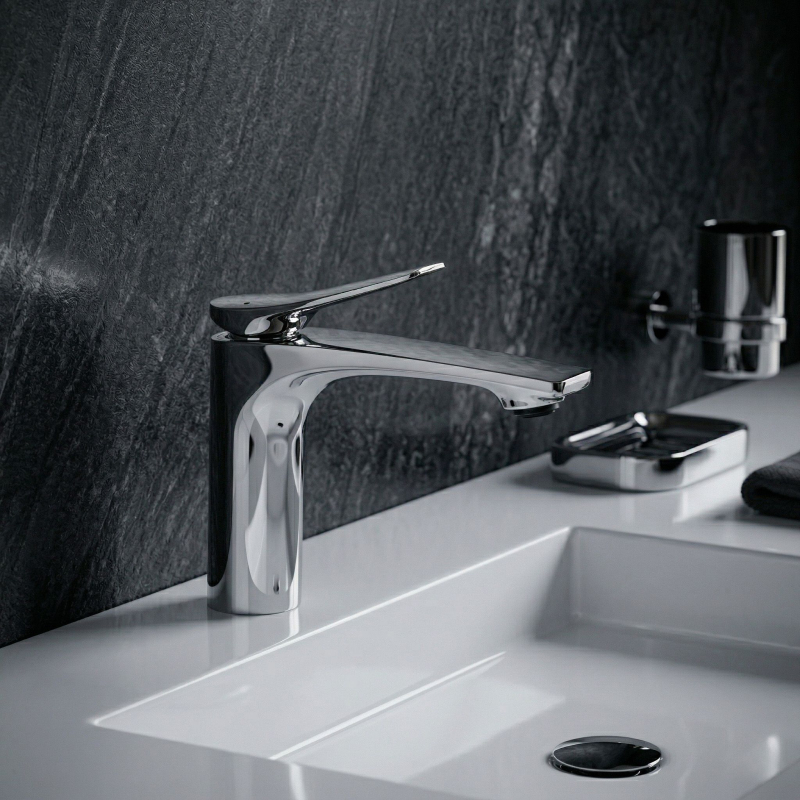 Umývadlová batéria VISION premium vo farbe chrómu je ideálnou voľbou pre tých, ktorí oceňujú nadčasový štýl a univerzálnu eleganciu v kúpeľni. Jej prepracovaná línia a striebristé, lesklé prevedenie zaisťujú, že sa táto armatúra skvele hodí ku každej farebnosti keramiky aj štýlu interiéru. Klasické prevedenie Chróm - striebristý vysoký lesk je najpreverenejšou voľbou do kúpeľne. Hladký chrómovaný povrch sa vyznačuje vysokou odolnosťou a jednoduchou údržbou, pričom si dlhodobo zachováva svoj lesk. Masívne mosadzné telo – zhotovenie z kvalitnej mosadze zaručuje výnimočnú odolnosť, stabilitu a plnú ochranu proti korózii. Keramická kartuša – použitie spoľahlivej keramickej kartuše zaisťuje plynulú a presnú reguláciu sily prúdu i teploty vody po mnoho rokov používania. Prémiová línia – starostlivo navrhnutý tvar a dôraz na detaily podčiarkujú vysokú kvalitu spracovania a dodávajú umývadlovej zóne ucelený, estetický vzhľad. Univerzálna konštrukcia - ergonomické rozmery umožňujú montáž na väčšinu umývadiel zapustených do dosky aj na modely na dosku vybavené vyhradeným otvorom pre armatúru. Voľbou umývadlovej batérie VISION premium vo farbe chrómu získavate osvedčené riešenie a estetický vzhľad. Ide o praktický a spoľahlivý prvok vybavenia, ktorý skvele doplní vzhľad vašej kúpeľne.
