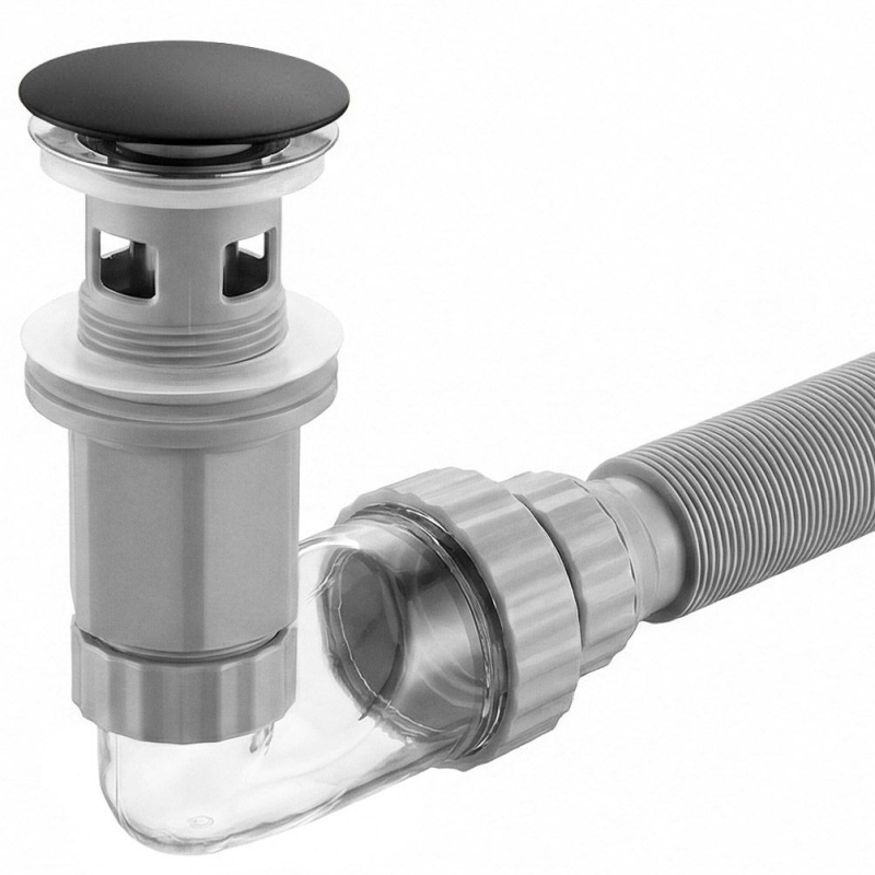 Zvoľte funkčné riešenie do svojej kúpeľne vďaka odtokovej sade so sifónom a zátkou Click-Clack. Tento produkt spája estetické prevedenie s inovatívnymi servisnými prvkami. Konštrukcia bola navrhnutá tak, aby čo najviac uľahčila montáž aj priebežné čistenie odpadu. Univerzálne použitie - sada je prispôsobená na montáž ako s umývadlami vybavenými prepadom, tak s modelmi bez prepadu, čo z nej robí všestrannú voľbu do každej kúpeľne. Začiatok Click-Clack s vyberateľnou vložkou - mechanizmus otváranie odpadu jediným stlačením. Kľúčovou výhodou je možnosť úplného vybratia hornej vložky zátky, čo umožňuje bleskovo odstrániť vlasy a usadeniny "zhora", bez nutnosti demontáže sifónu pod umývadlom. Priehľadné inšpekčné koleno - spodný prvok sifónu je vyrobený z transparentného materiálu. To umožňuje rýchlu kontrolu priechodnosti a uľahčuje nájdenie cenných drobností, ako sú stratené šperky, ktoré doň omylom spadnú. Uhlová konštrukcia 90° navyše šetrí miesto v skrinke. Blokácia nepríjemných pachov – konštrukcia sifónu účinne zadržuje vodu a vytvára bariéru, ktorá zabraňuje prenikaniu nepríjemných pachov z kanalizácie do miestnosti. Flexibilná harmoniková rúrka – odpad má nastaviteľnú dĺžku s možnosťou predĺženia. Ohybná konštrukcia uľahčuje pripojenie umývadla ku kanalizácii v netypických usporiadaniach a eliminuje problém montážnych posunov. Odolné materiály - zátka je opatrená trvanlivou povrchovou úpravou, odolnou proti korózii a ľahkou na čistenie. Telo sifónu aj rúrka sú vyrobené z odolného plastu a gumové tesnenia zaručujú úplnú tesnosť spojov. Vďaka vyberateľnému košíčku zátky a priehľadnej konštrukcii zaberie bežná údržba umývadlového sifónu Flow len chvíľku a univerzálne prípojky pasujú na štandardné umývadlá.