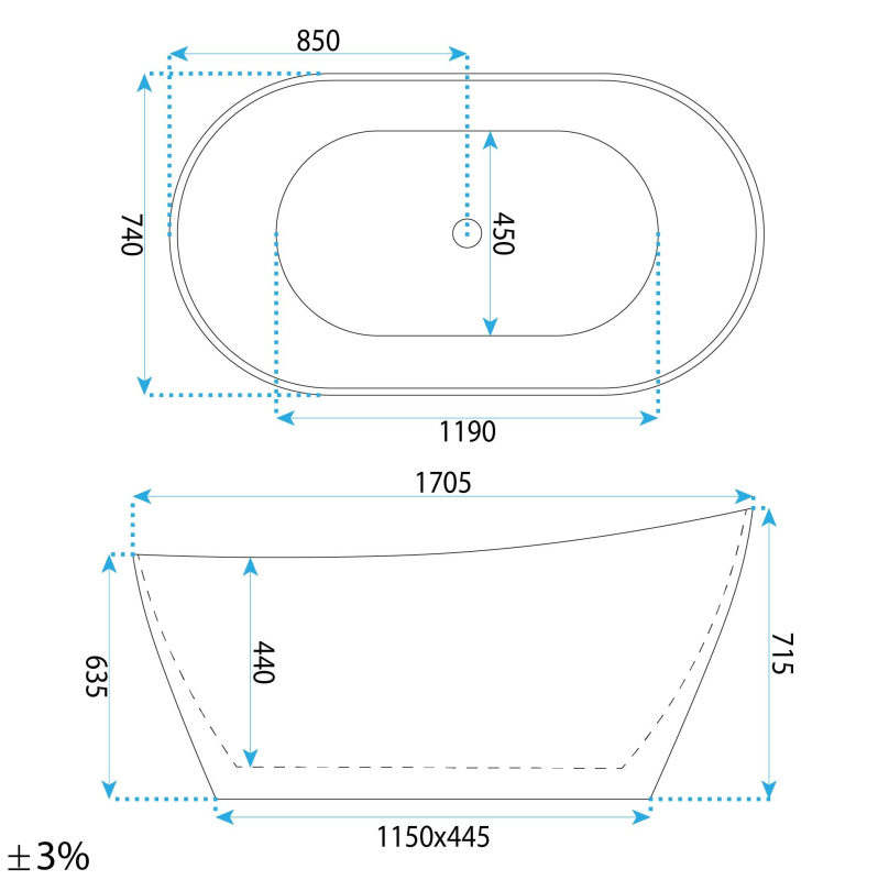 REA Voľne stojaca akrylátová vaňa Lusso Slim 170 KPL-W7504