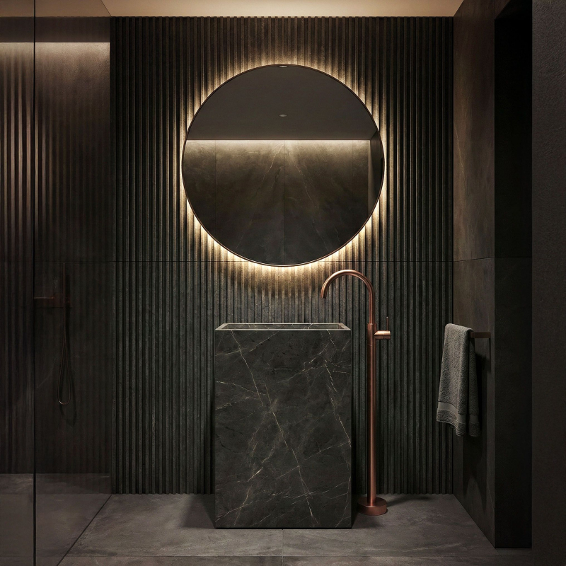 Objavte novú definíciu luxusu vo svojej umývacej zóne vďaka podlahovej umývadlovej batérii Rea Lungo. Toto mimoriadne dizajnové a funkčné riešenie predstavuje dokonalú alternatívu k tradičným nástenným či stojankovým batériám. Produkt bol navrhnutý pre moderné, priestranné kúpeľne, kde každý detail hrá úlohu v konečnom výsledku usporiadania. Podlahová montáž – umožňuje voľné usporiadanie priestoru a ideálne prispôsobenie voľne stojacim umývadlám. Vysoká konštrukcia – zaisťuje maximálny komfort používania a voľnosť pohybu pri každodennej hygiene. Prevedenie z mosadze – zaručuje dlhú životnosť, odolnosť proti korózii a spoľahlivú prevádzku. teploty. Designový profil – štíhla línia série Lungo dodáva interiéru ľahkosť a podčiarkuje prestížny charakter kúpeľne. Podlahová umývadlová batéria Rea Lungo je voľbou pre tých, ktorí chcú prekročiť zaužívanú schému a vniesť do interiéru moderný nádych. Vďaka svojej jedinečnej forme sa skvele hodí k voľne stojacim umývadlám a vytvára s nimi jednotný a elegantný celok. Voľbou tohto modelu Rea získate istotu najvyššej kvality spracovania a výrazný dekoratívny prvok, ktorý upúta pozornosť každej návštevy.