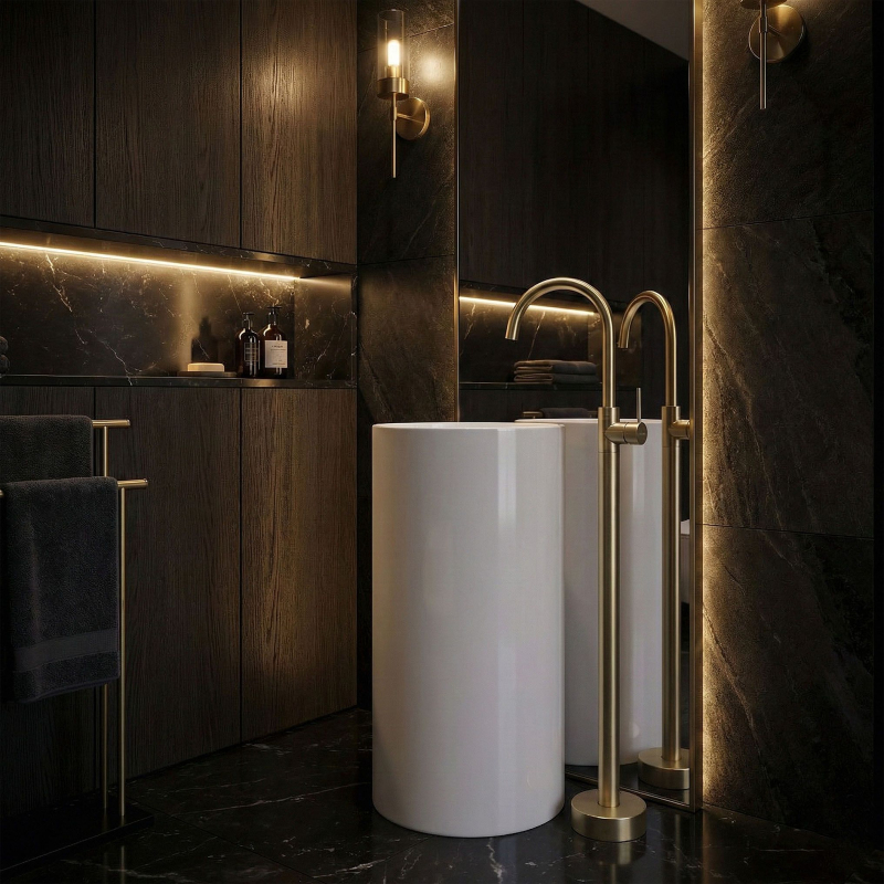 Objavte novú definíciu luxusu vo svojej umývacej zóne vďaka podlahovej umývadlovej batérii Rea Lungo. Toto mimoriadne dizajnové a funkčné riešenie predstavuje dokonalú alternatívu k tradičným nástenným či stojankovým batériám. Produkt bol navrhnutý pre moderné, priestranné kúpeľne, kde každý detail hrá úlohu v konečnom výsledku usporiadania. Podlahová montáž – umožňuje voľné usporiadanie priestoru a ideálne prispôsobenie voľne stojacim umývadlám. Vysoká konštrukcia – zaisťuje maximálny komfort používania a voľnosť pohybu pri každodennej hygiene. Prevedenie z mosadze – zaručuje dlhú životnosť, odolnosť proti korózii a spoľahlivú prevádzku. teploty. Designový profil – štíhla línia série Lungo dodáva interiéru ľahkosť a podčiarkuje prestížny charakter kúpeľne. Podlahová umývadlová batéria Rea Lungo je voľbou pre tých, ktorí chcú prekročiť zaužívanú schému a vniesť do interiéru moderný nádych. Vďaka svojej jedinečnej forme sa skvele hodí k voľne stojacim umývadlám a vytvára s nimi jednotný a elegantný celok. Voľbou tohto modelu Rea získate istotu najvyššej kvality spracovania a výrazný dekoratívny prvok, ktorý upúta pozornosť každej návštevy.