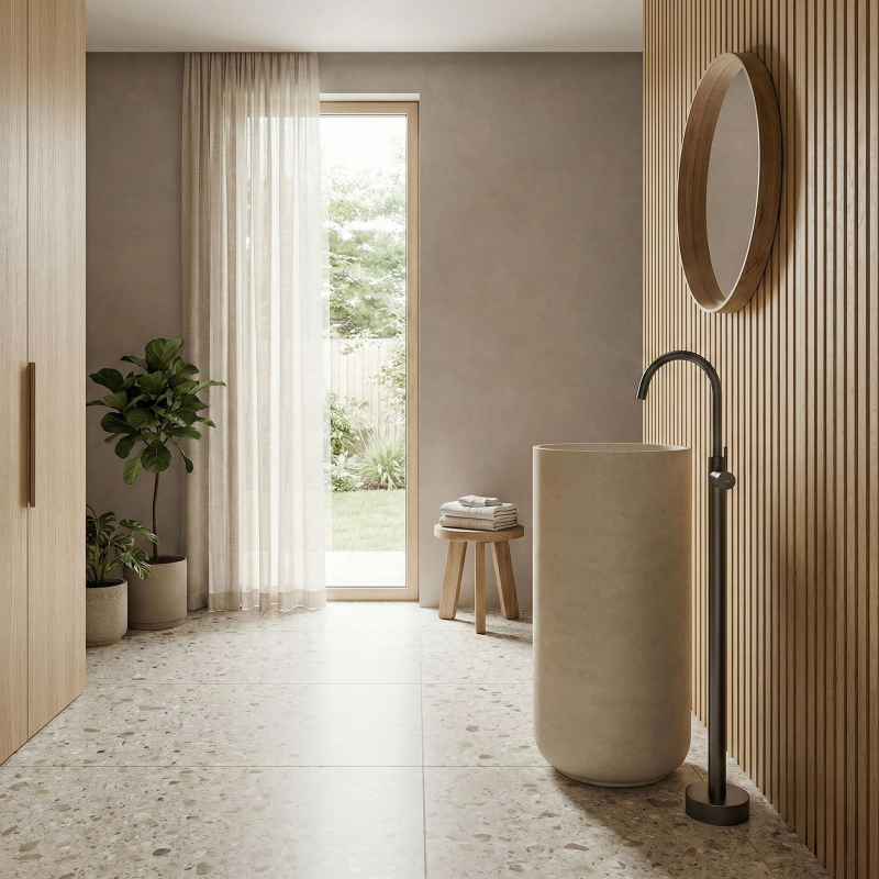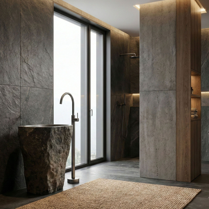 Objavte novú definíciu luxusu vo svojej umývacej zóne vďaka podlahovej umývadlovej batérii Rea Lungo. Toto mimoriadne dizajnové a funkčné riešenie predstavuje dokonalú alternatívu k tradičným nástenným či stojankovým batériám. Produkt bol navrhnutý pre moderné, priestranné kúpeľne, kde každý detail hrá úlohu v konečnom výsledku usporiadania. Podlahová montáž – umožňuje voľné usporiadanie priestoru a ideálne prispôsobenie voľne stojacim umývadlám. Vysoká konštrukcia – zaisťuje maximálny komfort používania a voľnosť pohybu pri každodennej hygiene. Prevedenie z mosadze – zaručuje dlhú životnosť, odolnosť proti korózii a spoľahlivú prevádzku. teploty. Designový profil – štíhla línia série Lungo dodáva interiéru ľahkosť a podčiarkuje prestížny charakter kúpeľne. Podlahová umývadlová batéria Rea Lungo je voľbou pre tých, ktorí chcú prekročiť zaužívanú schému a vniesť do interiéru moderný nádych. Vďaka svojej jedinečnej forme sa skvele hodí k voľne stojacim umývadlám a vytvára s nimi jednotný a elegantný celok. Voľbou tohto modelu Rea získate istotu najvyššej kvality spracovania a výrazný dekoratívny prvok, ktorý upúta pozornosť každej návštevy.