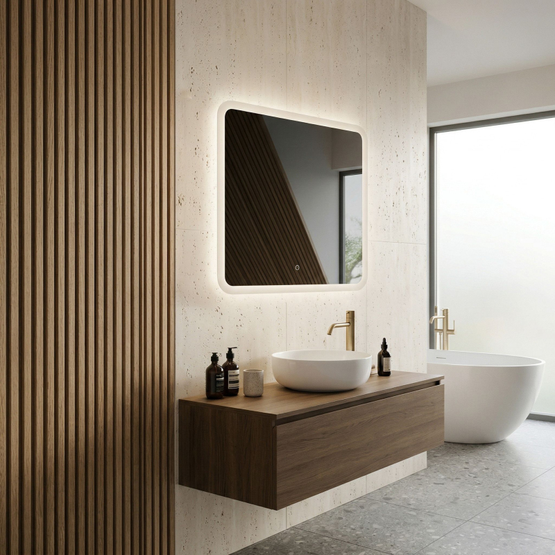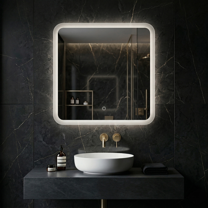Hľadáte výnimočný prvok, ktorý premení váš priestor? Oceňte eleganciu a modernosť vo svojej kúpeľni vďaka nášmu nástennému LED zrkadlu Rea 70×70 cm. Je to ideálne spojenie štýlu a funkčnosti, ktoré nadchne každého používateľa. Toto štvorcové zrkadlo s jemne zaoblenými rohmi, vyrobené z vysoko kvalitných materiálov, nielen zväčší priestor, ale aj každý deň poskytne vynikajúce osvetlenie. Unikátny tvar so zaoblenými rohmi vnáša do interiéru ľahkosť a moderný dizajn a predstavuje výrazný dekoratívny akcent. Mliečny LED rámček so šírkou 3 cm krásne rozptyľuje svetlo minimalistický a jemný vzhľad na stene. LED osvetlenie s neutrálnou farbou svetla zaručuje prirodzené podanie farieb, čo je mimoriadne užitočné pri rannom líčení alebo presnom holení. Intuitívne dotykové tlačidlo s funkciou stmievania umožňuje rýchle zapnutie aj plynulú reguláciu intenzity svetla a vytvára večer relaxačnú atmosféru. Praktický kábel so zástrčkou zložitých elektroinštalačných prác. Kúpeľňové LED zrkadlo Rea je vynikajúcou voľbou pre tých, ktorí si cenia každodenný komfort a premyslený dizajn. Dokonalé v každom detaile, vyrobené so starostlivosťou, sa stane funkčnou ozdobou vašej kúpeľne.