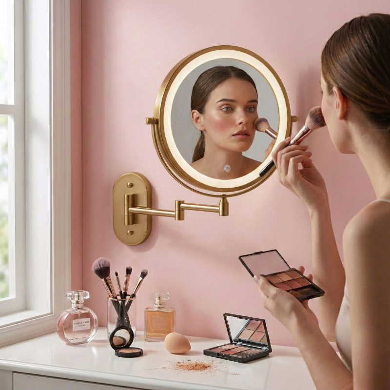 Nástenné kozmetické LED zrkadlo je praktické a elegantné riešenie ideálne do kúpeľne, šatne alebo k domácemu toaletnému stolíku. Tento obojstranný model na sklopnom ramene je nepostrádateľnou pomôckou pri líčení, holení i presnej starostlivosti – spája moderný dizajn s vysokou funkčnosťou. Obojstranná plocha (zväčšenie 3×) – jedna strana ponúka štandardný odraz, druhá trojnásobné zväčšenie. Otočný kotúč o 360 ° umožňuje rýchlu zmenu strany. LED osvetlenie s reguláciou - integrovaný svetelný rám ponúka tri farby svetla: teplú, neutrálnu a studenú. Dotykové tlačidlo umožňuje plynulé stmievanie aj zosvetľovanie. Pohodlné nabíjanie USB – vstavaná batéria sa ľahko nabíja pomocou priloženého kábla USB Type-C. Osvetlenie funguje bezdrôtovo, bez trvale visiacich káblov. Kĺbové rameno – pevná konštrukcia umožňuje zrkadlo približovať, odďaľovať aj sklopiť naplocho k stene. Kĺby zaisťujú voľnosť nastavenia ideálneho uhla. Oceľová konštrukcia – odolná oceľ zaručuje stabilitu pri používaní a estetická povrchová úprava dodáva moderný, elegantný vzhľad. Optimálny rozmer – priemer 20 cm predstavuje ideálny kompromis medzi pohodlím a úsporou miesta. Moderný make-up zrkadlo na ramene reálne zvyšuje komfort každodennej starostlivosti. Premyslená konštrukcia, skvelé osvetlenie tváre a bezdrôtová prevádzka z nej robí pohodlnú a univerzálnu voľbu do interiéru.