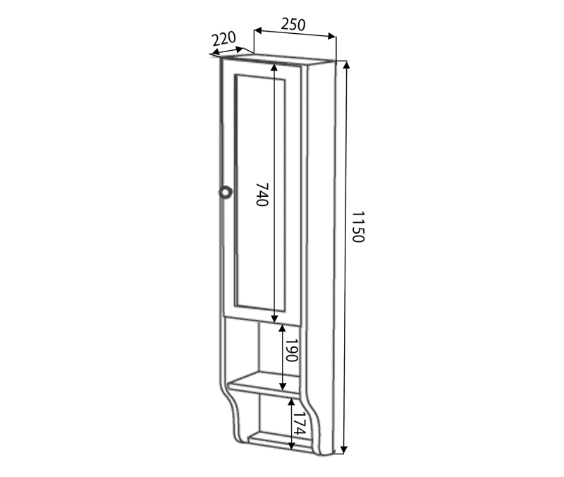 RETRO skrinka k zrkadlu 25x115x20cm, ľavá, starobiela 1706