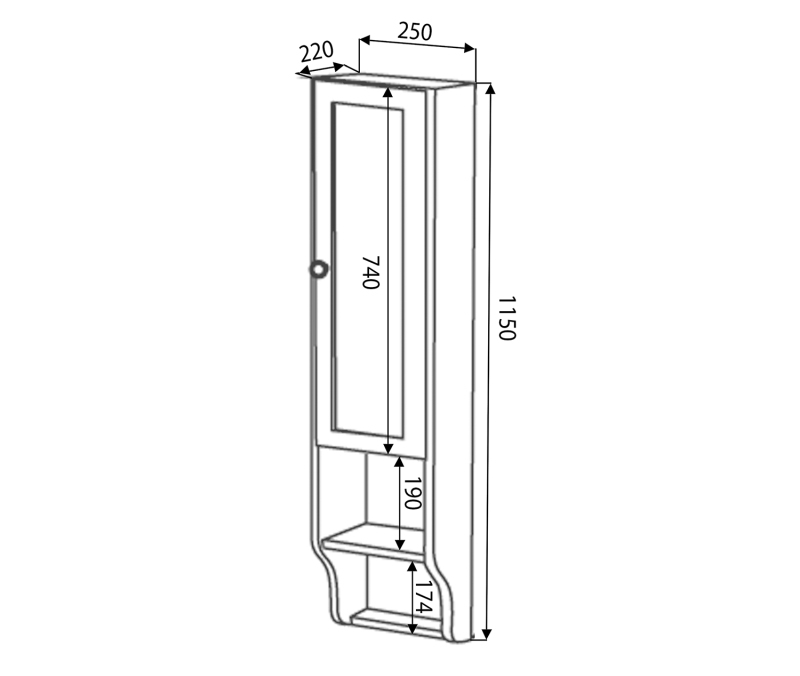 RETRO skrinka k zrkadlu 25x115x20cm, pravá, starobiela 1688