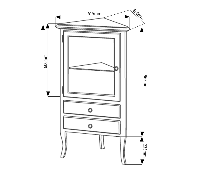 - 1x prosklená dvířka, uvnitř skleněná police