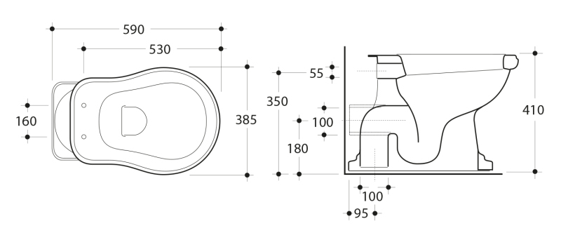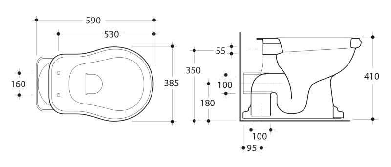 RETRO WC misa stojaca, 38,5x59cm, zadný odpad, čierna mat 101131
