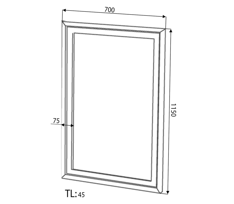 RETRO zrkadlo v drevenom ráme 700x1150mm, starobiela 1686