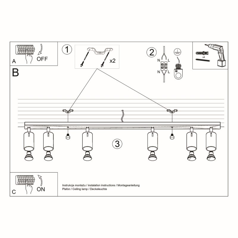 Zdroj svetla: GU10, 6x40W, 6x12W LED, 50-60Hz, ~220-230V, IP20, ochranná trieda I
