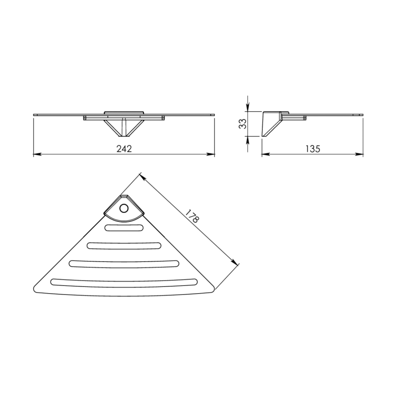 Rohová polica do sprchy, 178x178 mm, oblá, ABS/nerez lesk ES80 60525