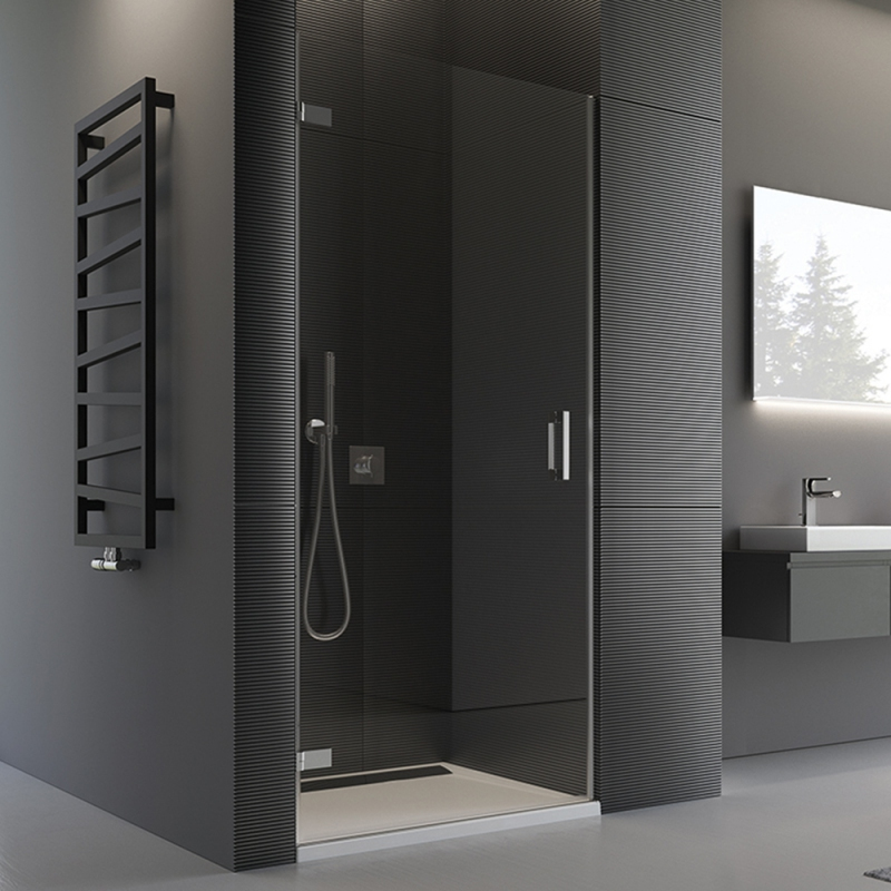 Bezrámová sprchová zástena od spoločnosti SanSwiss spĺňa vysoké nároky na design a individuálne riešenie kúpeľne. Kvalitné materiály ako masívne chrómované pánty (na vnútornej strane skla zapustené), 8mm bezpečnostné sklo, designové madlo. Antiplaková úprava skla AQUAPERLE na ľahké čistenie. 5mm aluchrómová prahová lišta. Sprchové dvere sa otvárajú von. Sprchové dvere je možné kombinovať s bočnou stenou s vyrovnávacím profilom PUDT2P alebo s bočnou stenou s L-kovaním PURDT2 (na fotografii). Túto sprchovú zástenu je možné vyrobiť vo verzii PURmax – až do výšky 2,5 m – za príplatok. Možné je aj umiestnenie v nike. Zobraziť viac