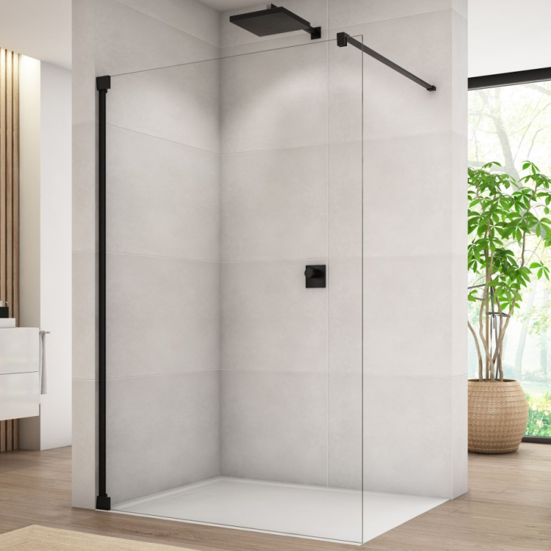 RONAL WALK IN CADURA Walk-in pevná stena čierna mat číre CAT4SM20607