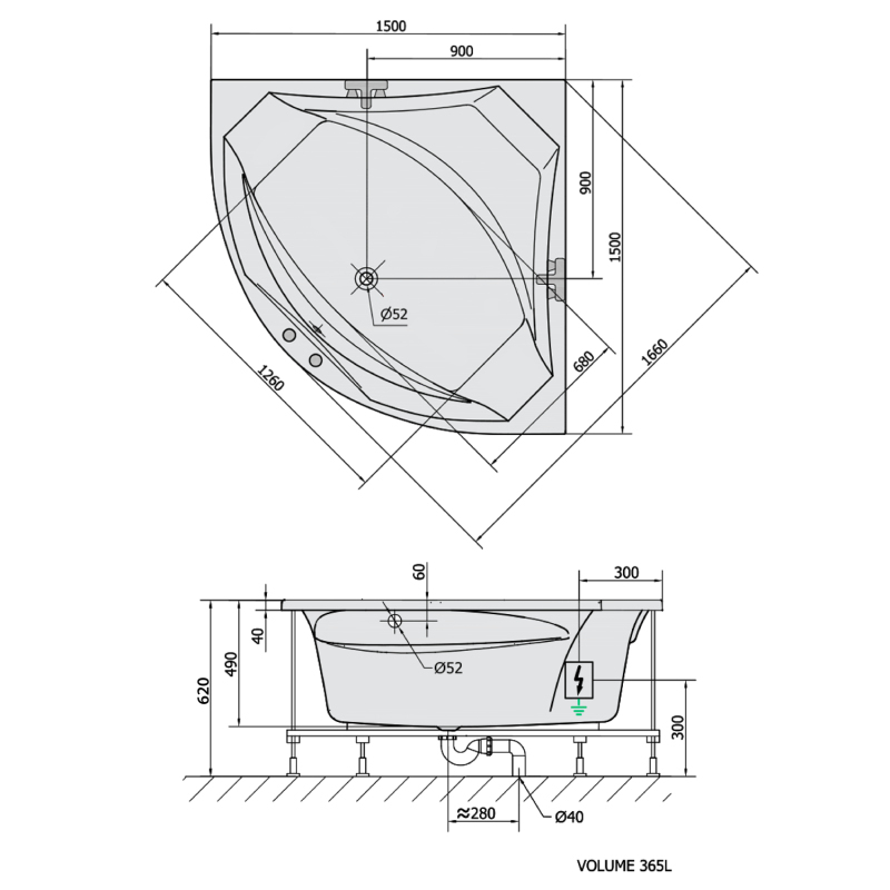 ROSANA hydromasážna vaňa, 150x150x49cm, Active Hydro-Air, chróm 57173