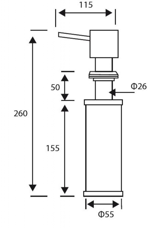 Zápustný dávkovač mydla s objemom 250 ml je skvelým riešením pre všetky kúpeľne a kuchyne. Dávkovač sa umiestňuje do otvoru pre stojančekovú batériu na umývadle. Možno ho použiť aj do kuchynského drezu. Plní sa veľmi ľahko zhora - jednoduchým vytiahnutím pumpičky, naliatím tekutého mydla a spätným nasadením pumpičky - nie je potrebné nič skrutkovať.