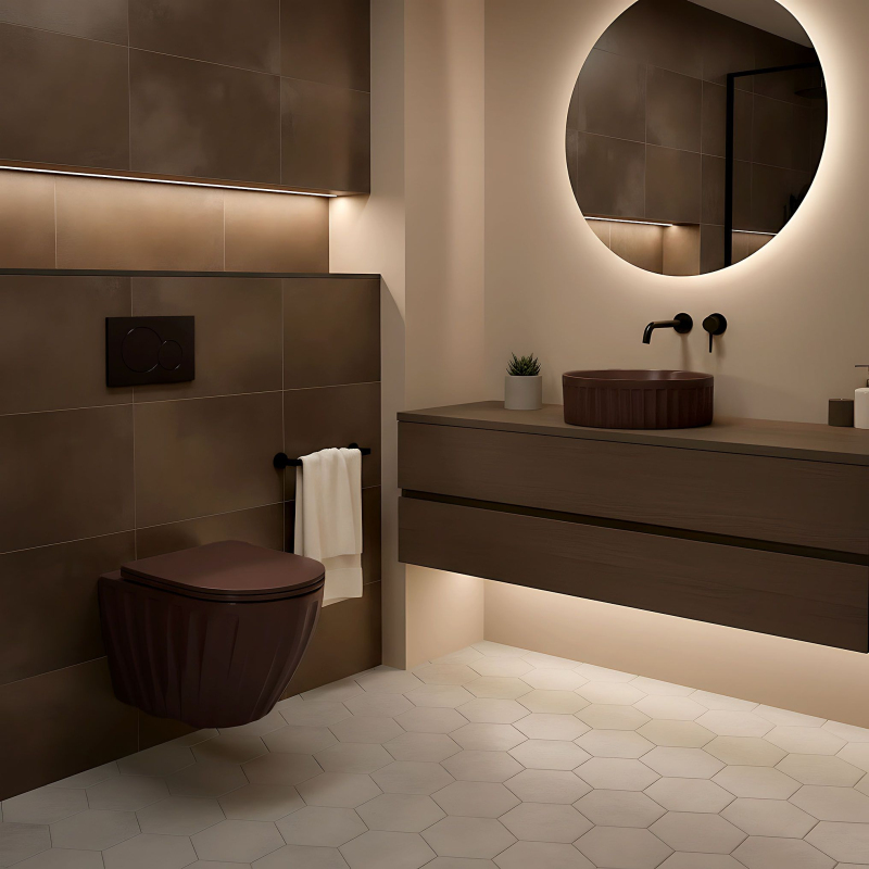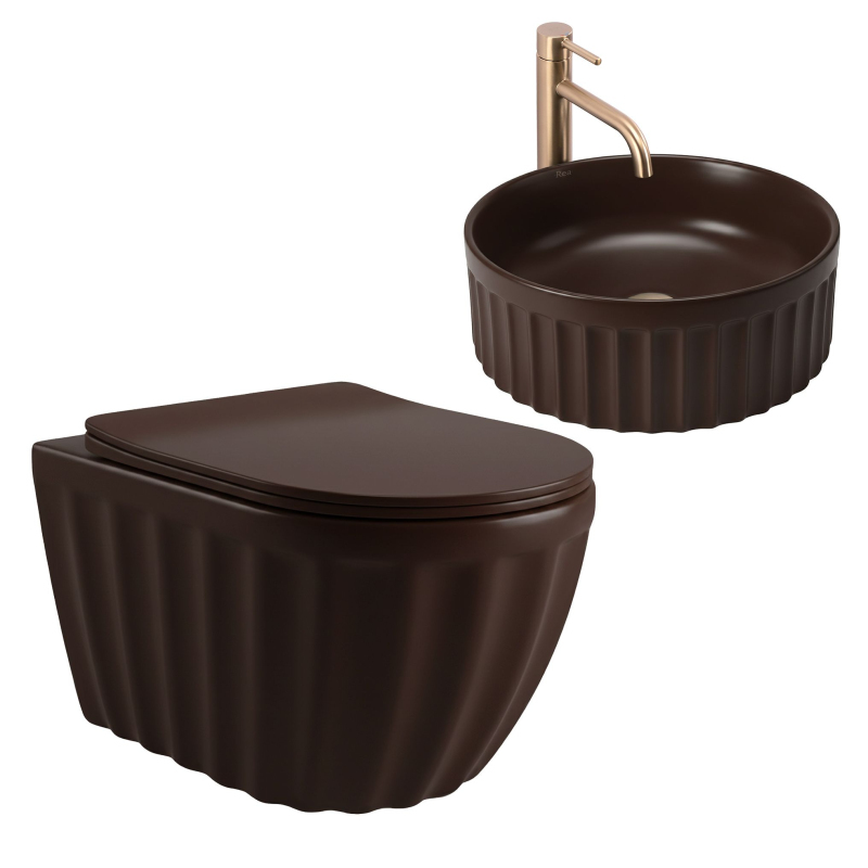 Sada: Závesná WC misa + Umývadlo na dosku Rea Duo Espresso Matt
