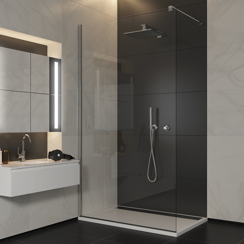 Walk-in zástena EASY od spoločnosti SanSwiss s vyrovnávacím profilom a nadštandardnou výškou 225 cm! Kvalitné materiály profilov aj vzpery a tiež 8mm bezpečnostné číre sklo s antiplakovou úpravou Aquaperle sú nespornou výhodou Walk-in zásteny EASY STR4PX. Walk-in zástena dodávaná vrátane vodorovnej vzpery 1250 mm (možno skrátiť), celková výška vrátane vodorovnej vzpery 2267 mm. Zástenu je možné namontovať vľavo aj vpravo. Vrátane podlahovej lišty vo farbe aluchróm. Walk-in zástenu je možné kombinovať s ďalšou Walk-in zástenou STR4PX - nutné doobjednať spojovací diel pre spojenie 2 vodorovných vzpier VT90.10. Za príplatok je možné zakúpiť elegantný stojan s poličkami a držiakom uteráka: KASW.50.1000 (2 poličky, 1 mydelnička) alebo KASF.50.1000 (1 držiak uteráka, 2 poličky, 1 mydlenka). K stojanu je možné objednať aj úložný box vrátane krytu - KABC.50. Zobraziť viac