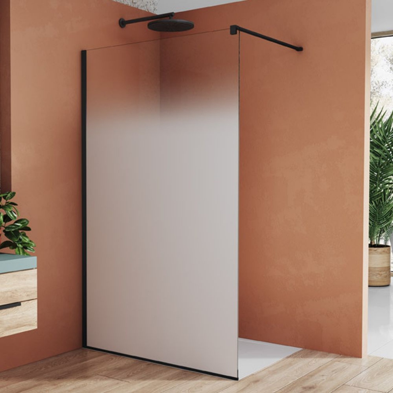 Walk-in zástena s vyrovnávacím profilom EASY BLACK LINE od SanSwiss v atraktívnom dekore skla Shade - biela sieťotlač na prednej strane skla pre zaistenie intimity. 8mm bezpečnostné sklo je na vnútornej strane skla vybavené antiplakovou úpravou Aquaperle. Vrátane vodorovnej vzpery 1250 mm. Celková výška vrátane vodorovnej vzpery 2017 mm. Zástenu je možné namontovať vpravo aj vľavo. Vrátane podlahovej lišty v matnej čiernej farbe. SanSwiss ponúka okrem štandardne dodávanej vodorovnej vzpery aj rohovú alebo stropnú vzperu (za príplatok). Záleží na Vašom prianí i možnostiach kúpeľne, ktorému riešeniu dáte prednosť. Zástenu je možné inštalovať na vaničku aj na dlažbu. Za príplatok je možné zakúpiť elegantný stojan s poličkami a držiakom uteráka: KASW.06.1000 (2 poličky, 1 mydelnička) alebo KASF.06.1000 (1 držiak uteráka, 2 poličky, 1 mydlenka). K stojanu je možné objednať aj úložný box vrátane krytu - KABC.06. Walk-in zástenu EASY je možné kombinovať s montážnym setom BTE2 - krátka otočná stena v 90 ° alebo s montážnym setom BTE3 - krátka otočná stena v 180 °, krátke otočné steny čiastočne zamedzia striekanie vody zo sprchovacieho priestoru. Možná kombinácia dvoch Walk-in zásten EASY pomocou spojovacieho dielu VT90.06. Možná L-montáž - 2 Walk-in zásteny spojené spojovacím profilom WPE.06.2000. Zobraziť viac
