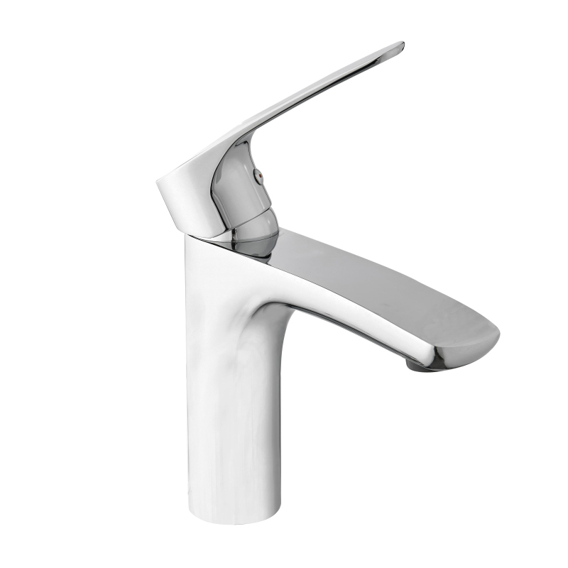 Páková stojanková umývadlová batéria bez výpustu. V chrómovom prevedení. Výška batérie je 18 cm.