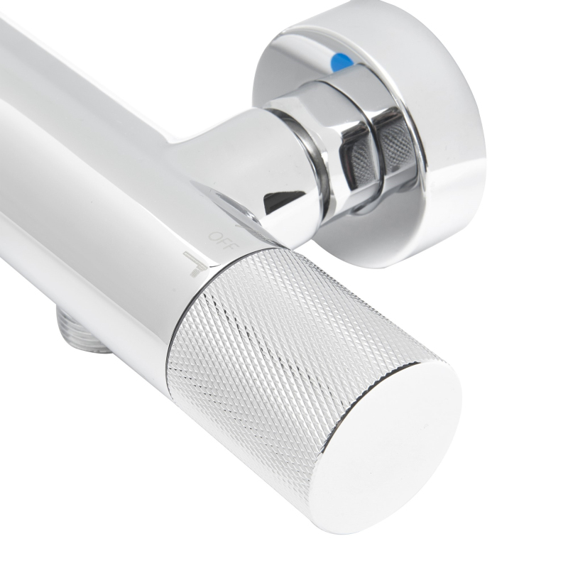 Termostatická nástenná vaňová batéria bez sprchového setu. V chrómovom prevedení. Rozteč batérie 150 mm.