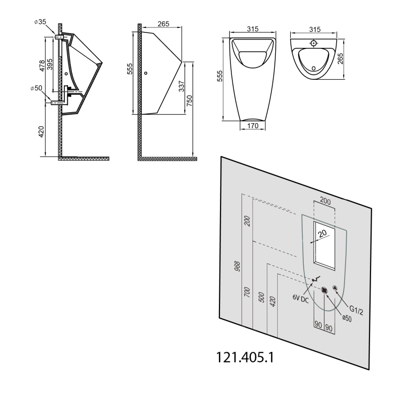 Integrovaný senzorový splachovač pre urinál 6V DC PS862