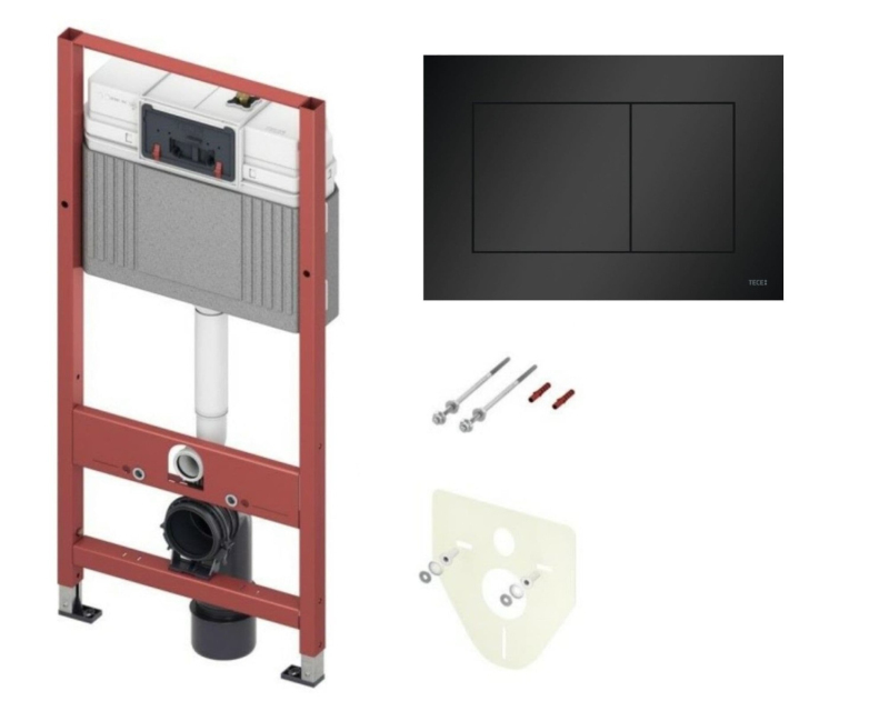 TECE profil set 4v1. Súčasťou balenia je: TECEprofil base pre WC, ovládanie spredu, stavebná výška 112 cm - skrutky a hmoždinky na uchytenie do nosnej steny - ovládacie tlačidlo TECEnow čierny mat!!!! - zvukoizolačná vložka TECEprofil pre WC.
