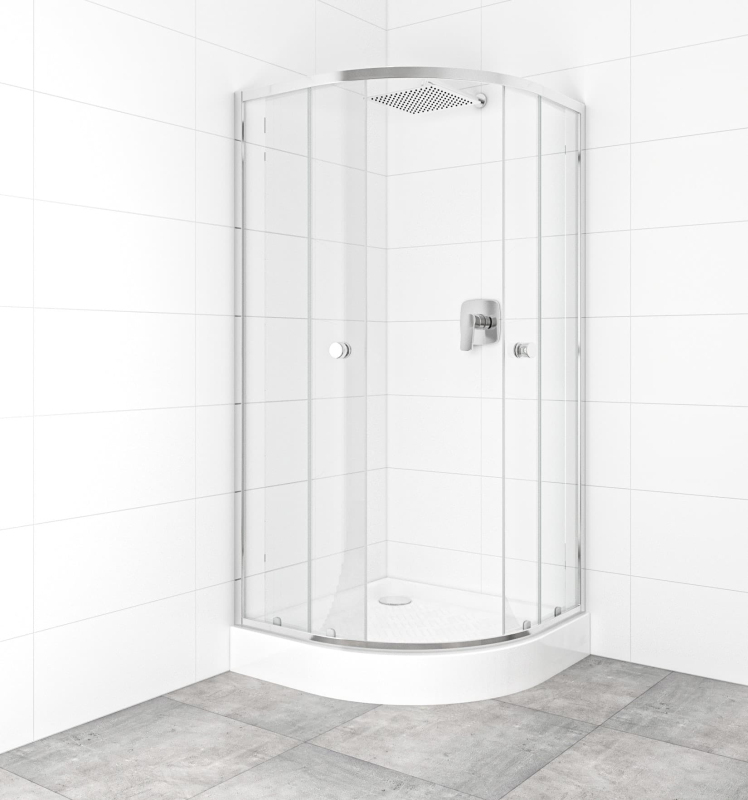 Sprchovací kút s vaničkou a farbou profilov v lesklom chróme, výplň je z číreho skla bez dekoru. Posuvný systém otvárania. Ľavá aj pravá orientácia.