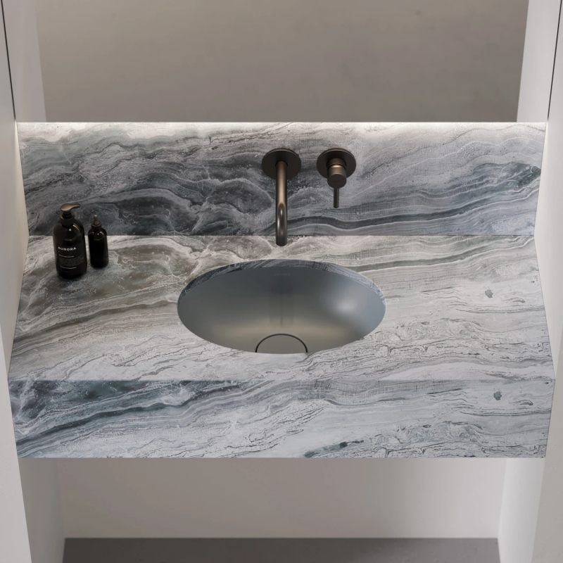 Omnires Shell M+ podstavné umyvadlo, 38 × 25 cm, ash grey mat SHELL380UPAG