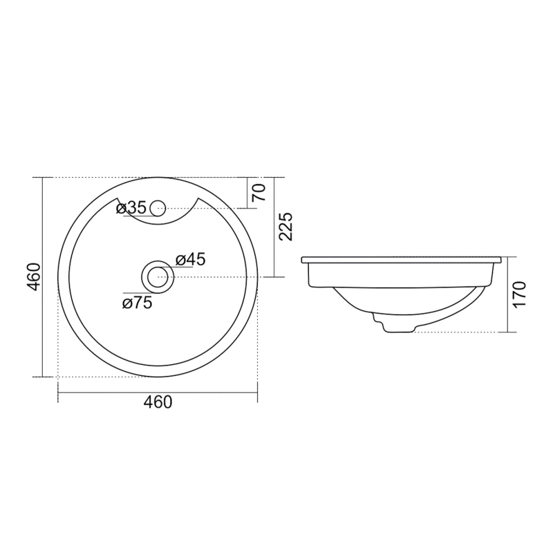 SHIPRA keramické umývadlo zápustné, priemer 46cm, biela