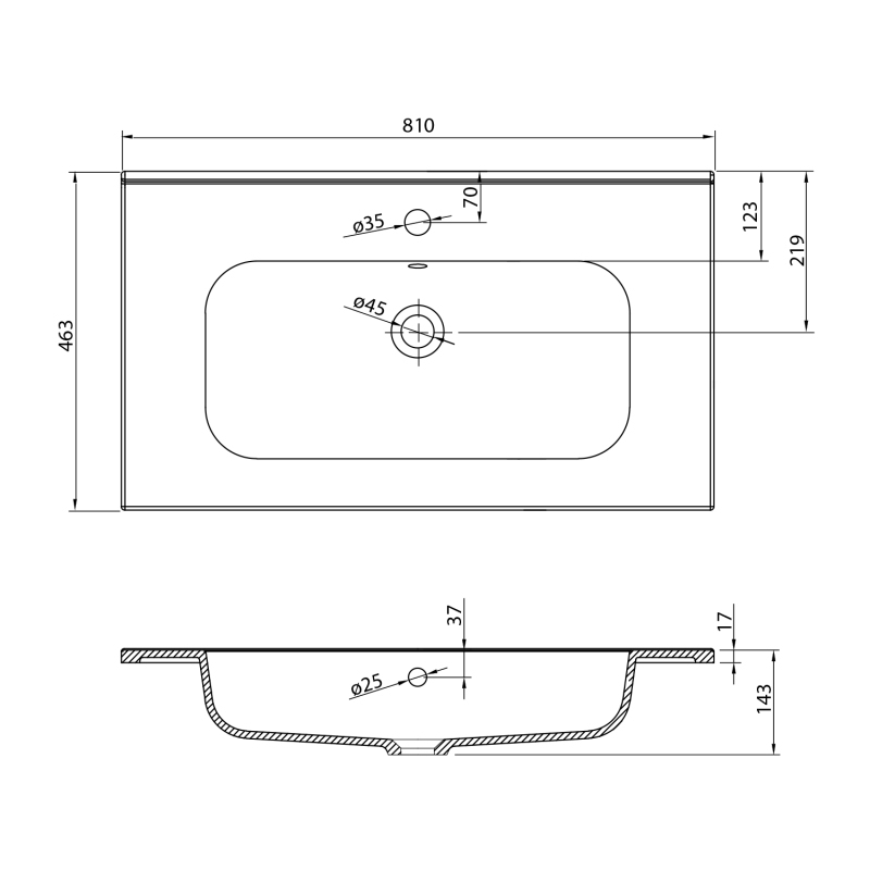 SIDRA umývadlo, liaty mramor, 81x46cm, biela