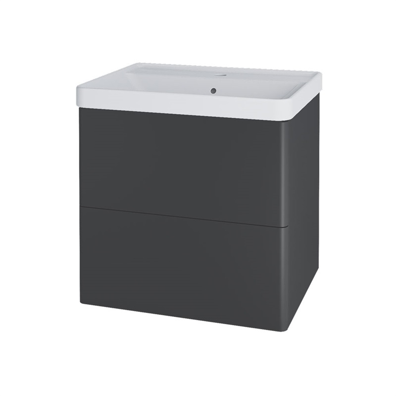 Siena, skrinka s keramickým umývadlom, 610x608x475 mm, push, 2 zásuvky, antracit mat CN430
