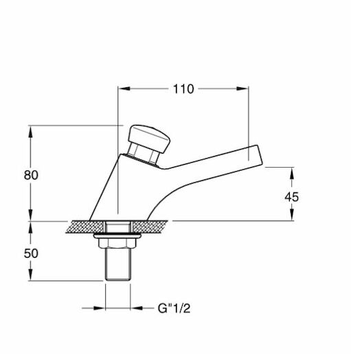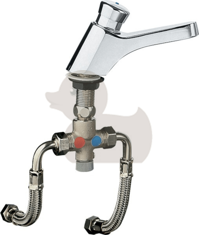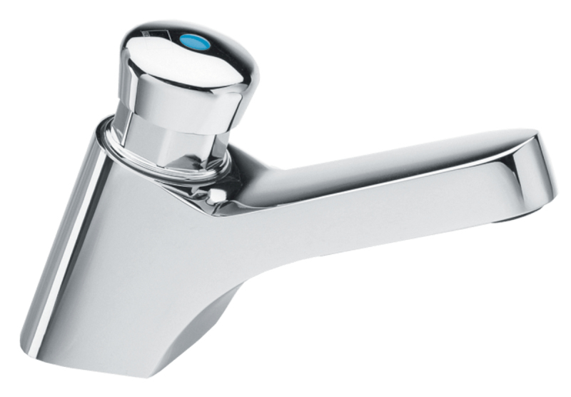 Samouzatvárací stojankový ventil na umývadlo s časovým spínačom (bez regulátora teploty AC950). Používať môžete buď studenú vodu alebo musíte použiť regulátor teploty AC950, ktorým nastavíte požadovanú teplotu vody na výstupe.