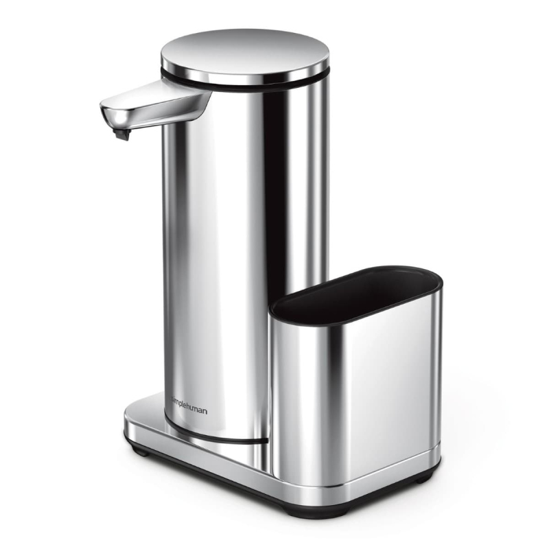 Simplehuman bezdotykový dávkovač mydla – 414 ml + držiak hubky lesklá nerez dobíjací ST1091