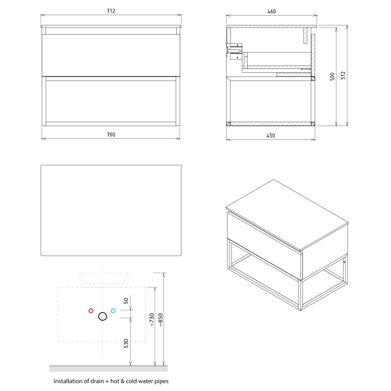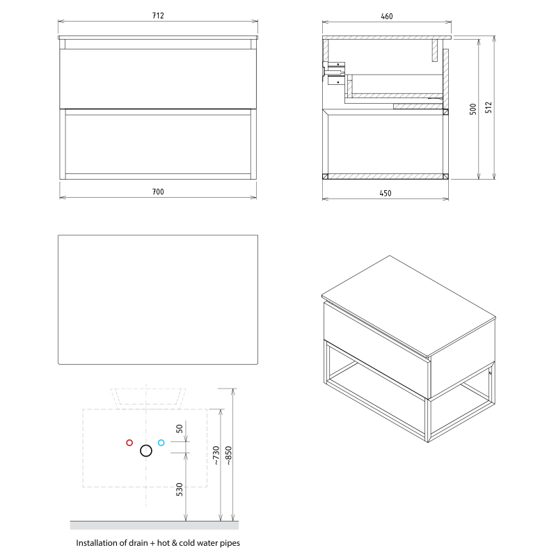 - Otvor pro baterii/výpust lze vyvrtat v místě instalace nebo dle výkresu ve výrobě.