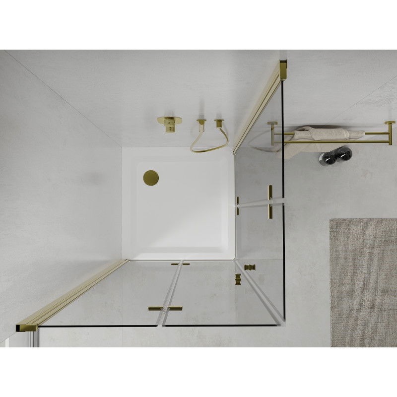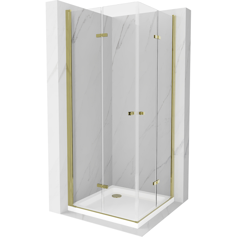 Skladací sprchovací kút Mexen Lima Duo 80 x 80 cm, priehľadný, zlatý + Plochá sprchová vanička - 856-080-080-50-02-4010G